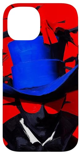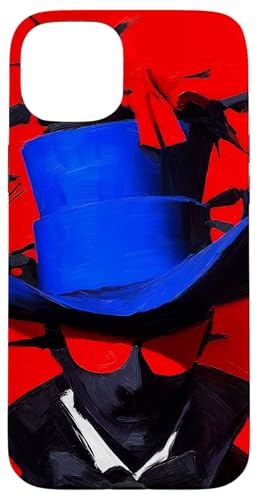 Top-Hatted Mystery Man in Blue & Birds A Dash of Charm & Red Case for iPhone 15