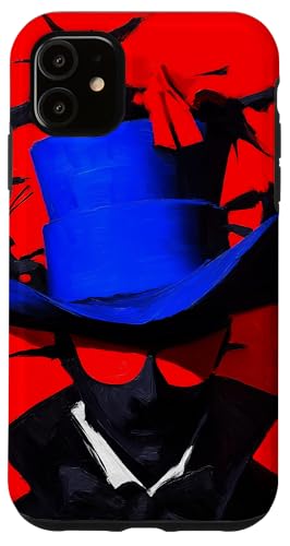 Top-Hatted Mystery Man in Blue & Birds A Dash of Charm & Red Case for iPhone 11