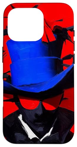 Top-Hatted Mystery Man in Blue & Birds A Dash of Charm & Red Case for iPhone 16 Pro
