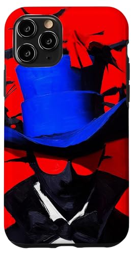 Top-Hatted Mystery Man in Blue & Birds A Dash of Charm & Red Case for iPhone 11 Pro
