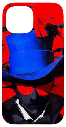Top-Hatted Mystery Man in Blue & Birds A Dash of Charm & Red Case for iPhone 15 Pro Max