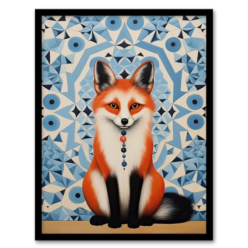 Artery8 Chakra Fox Concept Art Oil Painting Blue Kaleidoscope Pattern Animal Portrait Artwork Framed Wall Art Print A4