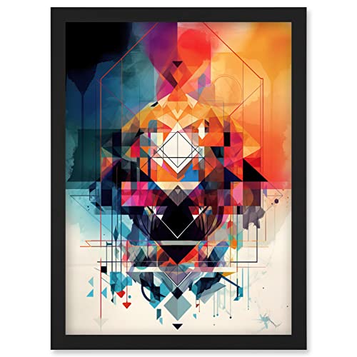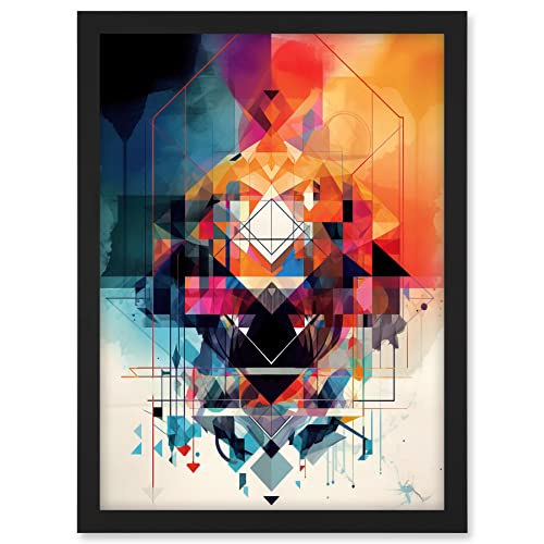 Artery8 Abstract Geometric Spectral Prism Kaleidoscope Colour Light Shapes Modern Watercolour Illustration Artwork Framed A3 Wall Art Print
