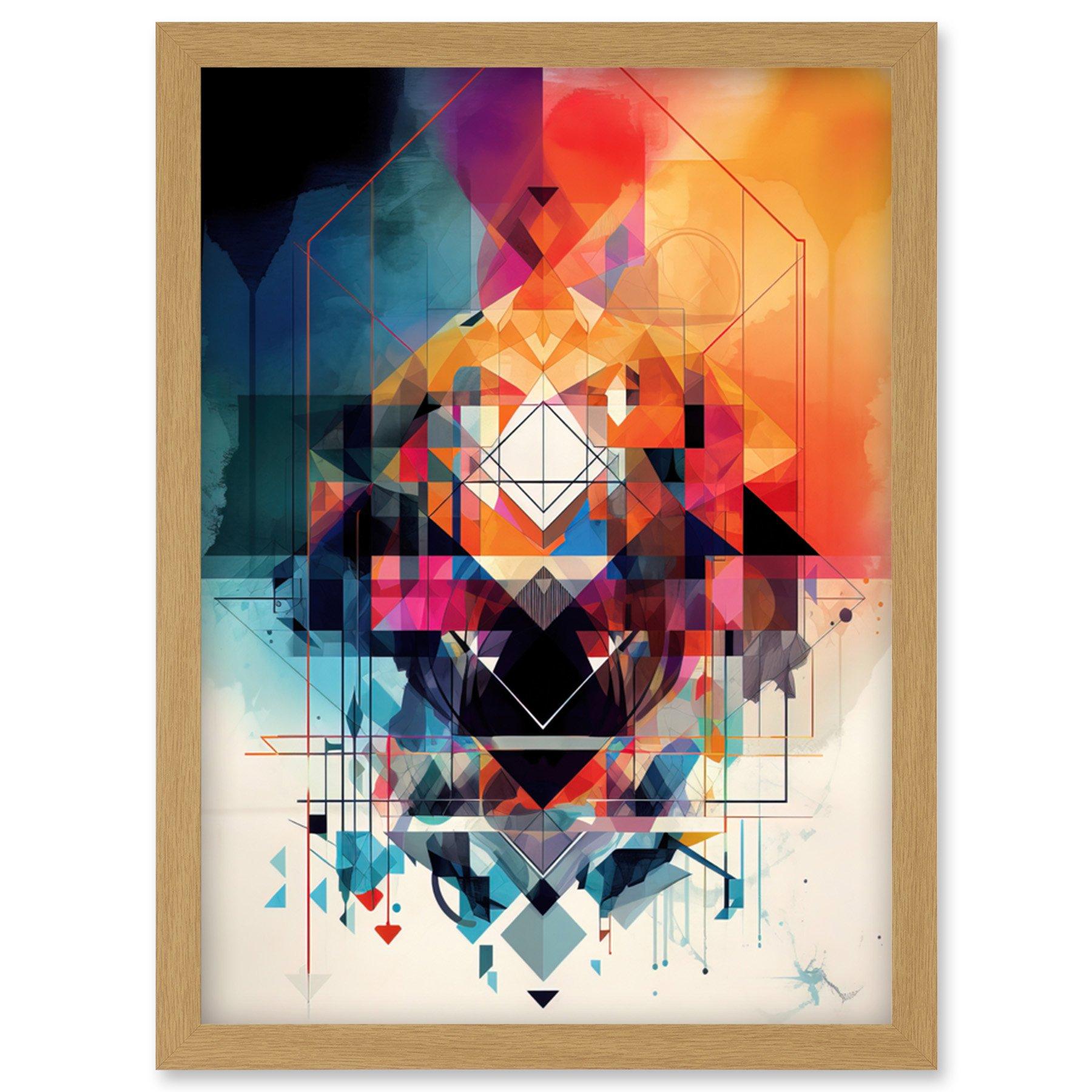 Abstract Geometric Spectral Prism Kaleidoscope Colour Light Shapes Modern Watercolour Illustration Artwork Framed Wall Art Print A4