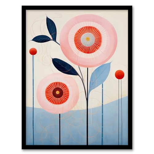 Wee Blue Coo Kaleidoscope Blossom Oil Painting Pastel Colour Pink Blue Boho Geometric Artwork Framed Wall Art Print A4