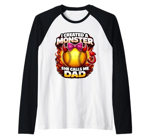 I Created A Monster She Calls Me Dad Softball Daughter Funny Raglan Baseball Tee