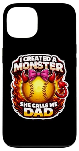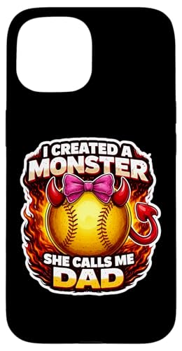 I Created A Monster She Calls Me Dad Softball Daughter Funny Case for iPhone 15