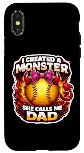 I Created A Monster She Calls Me Dad Softball Daughter Funny Case for iPhone XS Max