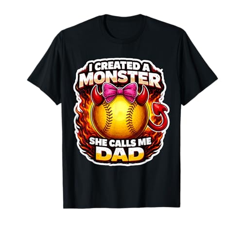 I Created A Monster She Calls Me Dad Softball Daughter Funny T-Shirt