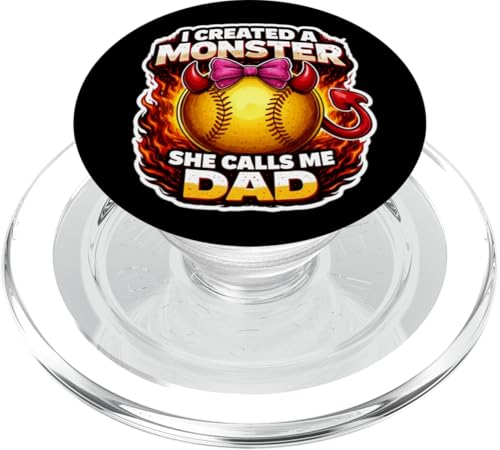 I Created A Monster She Calls Me Dad Softball Daughter Funny PopSockets PopGrip for MagSafe