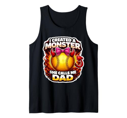 I Created A Monster She Calls Me Dad Softball Daughter Funny Tank Top