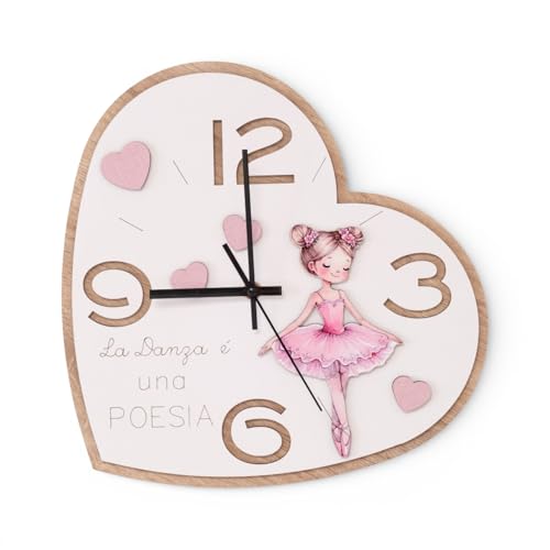 Doni Bomboniere Baptism 1 Piece Wall Clock First Birthday Communion Heart with Pink Tutu Ballerina and Bow Phrase Dance Is A Poem Complete Original Cheap Gift Ideas