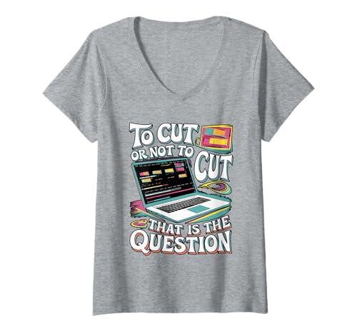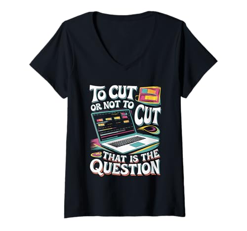Womens to Cut Or Not to Cut That's Not A Question Video Editor V-Neck T-Shirt