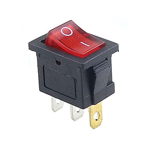 1PCS KCD1 2PIin 3Pin Boat Car Rocker Switch 6A/10A 250V/125V AC Red Yellow Green Blue Black Button KCD1 Switches (Color : Red 3pin Lamp)