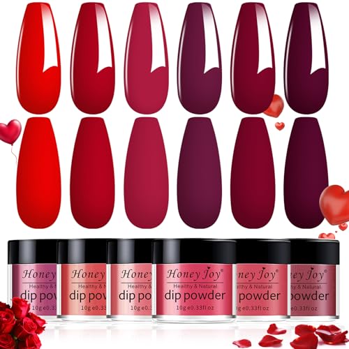 Honey Joy 6 BOX/SET Wine Red Dip Powder Dark Barn Red Fine Dipping Powder Colors No Need Lamp Cure,Like Gel Polish Effect,Even & Smooth Finishing (DP-A-6pcs-10g/box)