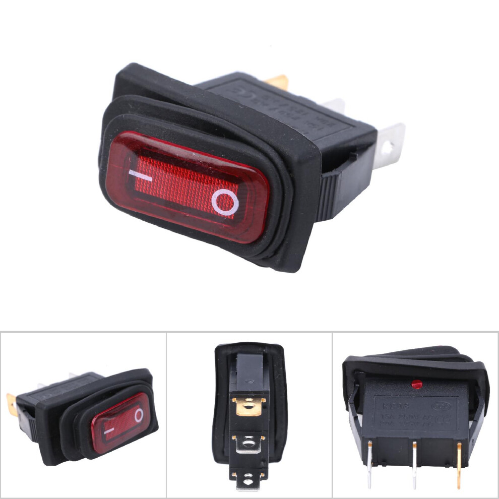 3 Pcs Waterproof 3-Pin Light Switch 15A/250VAC Red Lamp Cover