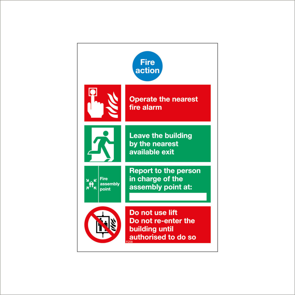 (150 x 200mm - 6 x 8, A - Sticker / Sav - Non-See Through) FI258 Fire Action Operate Nearest Fire Alarm Sign Running Man Drill Escape Smoke 450mm x 60