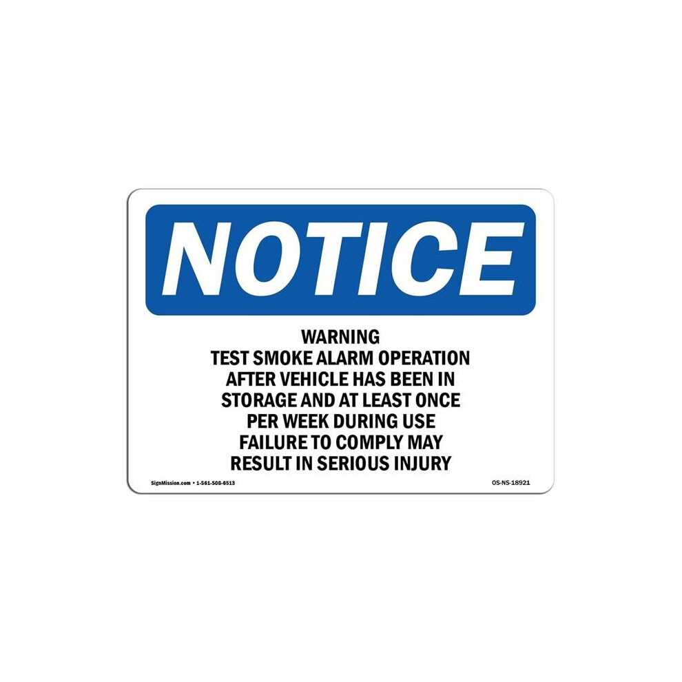 SignMission OS-NS-A-1218-L-18921 12 x 18 in. OSHA Notice Sign - Warning Test Smoke Alarm Operation After