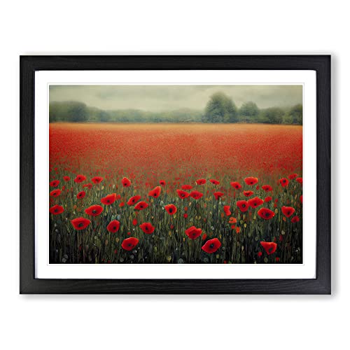 Splendid Poppies Flowers H1022 Framed Print for Living Room Bedroom Home Office Décor, Wall Art Picture Ready to Hang, Black A2 Frame (64 x 46 cm)