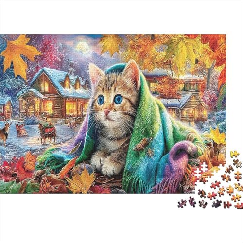 Autumn Kitten 1000Pc Puzzle Jigsaw Eco-Friendly Material Sustainable High Difficulty Relaxing Cat Town Street for A Puzzle Gift for Women And Men 70x50cm/1000pcs