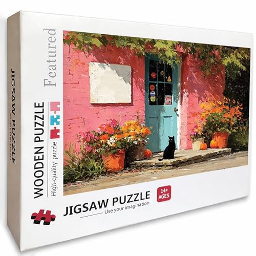 500 Piece Jigsaw Puzzle for Adults, Street View & Cat Premium Wooden Puzzles with Poster, Classic Cut, Interlocking Pieces for Home Decor & Mindfulness 20 x 15 in - Aged 14+ Only (Not a Toy) P3#1122