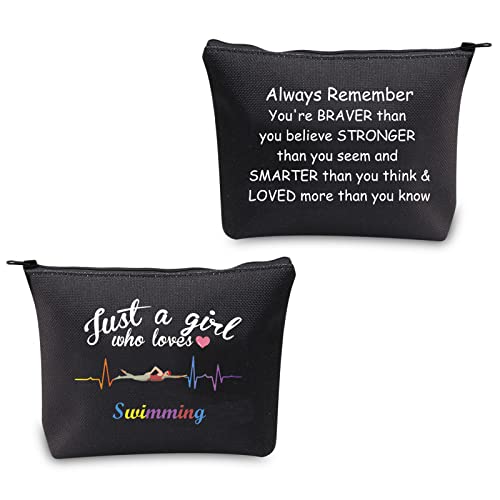 Girl Swimmer Gifts just a Girl Who Loves Swimming Makeup Bag Swim Cosmetic Bags Gifts for Swimming Pool Lovers Travel Bag Organizer Portable Small