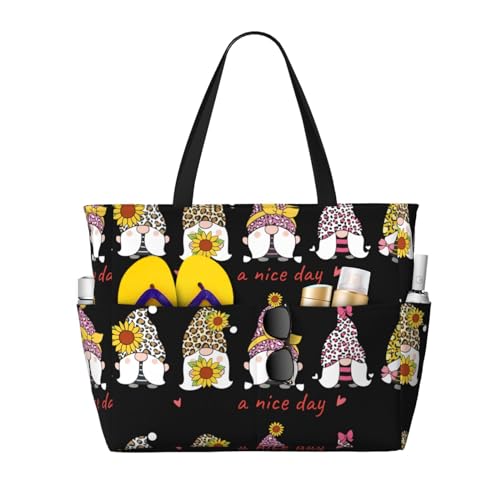 Xiso Ver Large Beach Tote Bag for Women Extra Large Capacity Waterproof Sandproof Pool Bag Suitable for Swimming Pool Gym Groceries Travel - Gnome Home With A Cute Gnome, Black, One Size