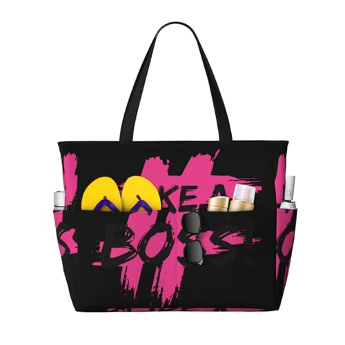Xiso Ver Large Beach Tote Bag for Women Extra Large Capacity Waterproof Sandproof Pool Bag Suitable for Swimming Pool Gym Groceries Travel - A Truly Great Boss, Black, One Size