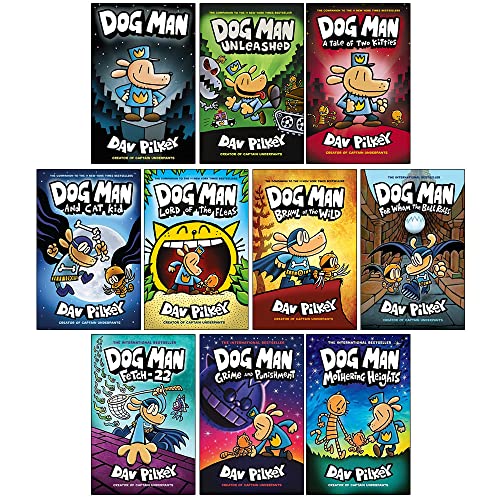 Dog Man Series 1-10 Books Collection Set By Dav Pilkey (Dog Man, Unleashed, A Tale of Two Kitties, Dog Man and Cat Kid, Lord of the Fleas, Brawl of the Wild, For Whom the Ball Rolls, Fetch-22 & More)