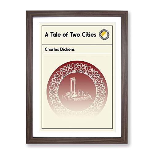 Book Cover A Tale Of Two Cities Charles Dickens Modern Framed Wall Art Print, Ready to Hang Picture for Living Room Bedroom Home Office Décor, Walnut A2 (64 x 46 cm)