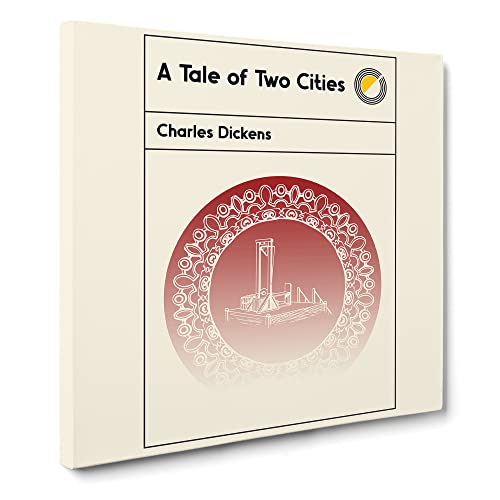 Book Cover A Tale of Two Cities Charles Dickens Modern Canvas Wall Art Print Ready to Hang, Framed Picture for Living Room Bedroom Home Office Décor, 14x14 Inch (35x35 cm)