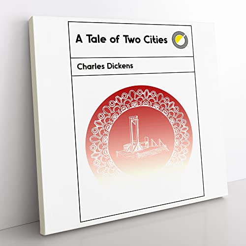 Book Cover A Tale of Two Cities Charles Dickens Modern Canvas Wall Art Print Ready to Hang, Framed Picture for Living Room Bedroom Home Office Décor, 50x50 cm (20x20 Inch)