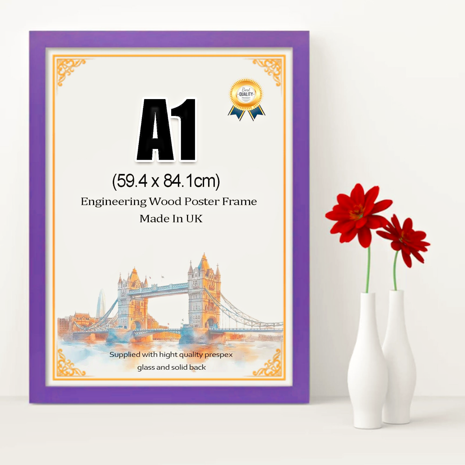 (33x23 Inch (DIN A1)) Purple Picture Frame / Wall Art Frames / Flat Wooden Effect Poster Frame / Photo Print Frame