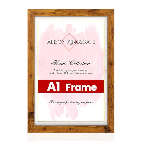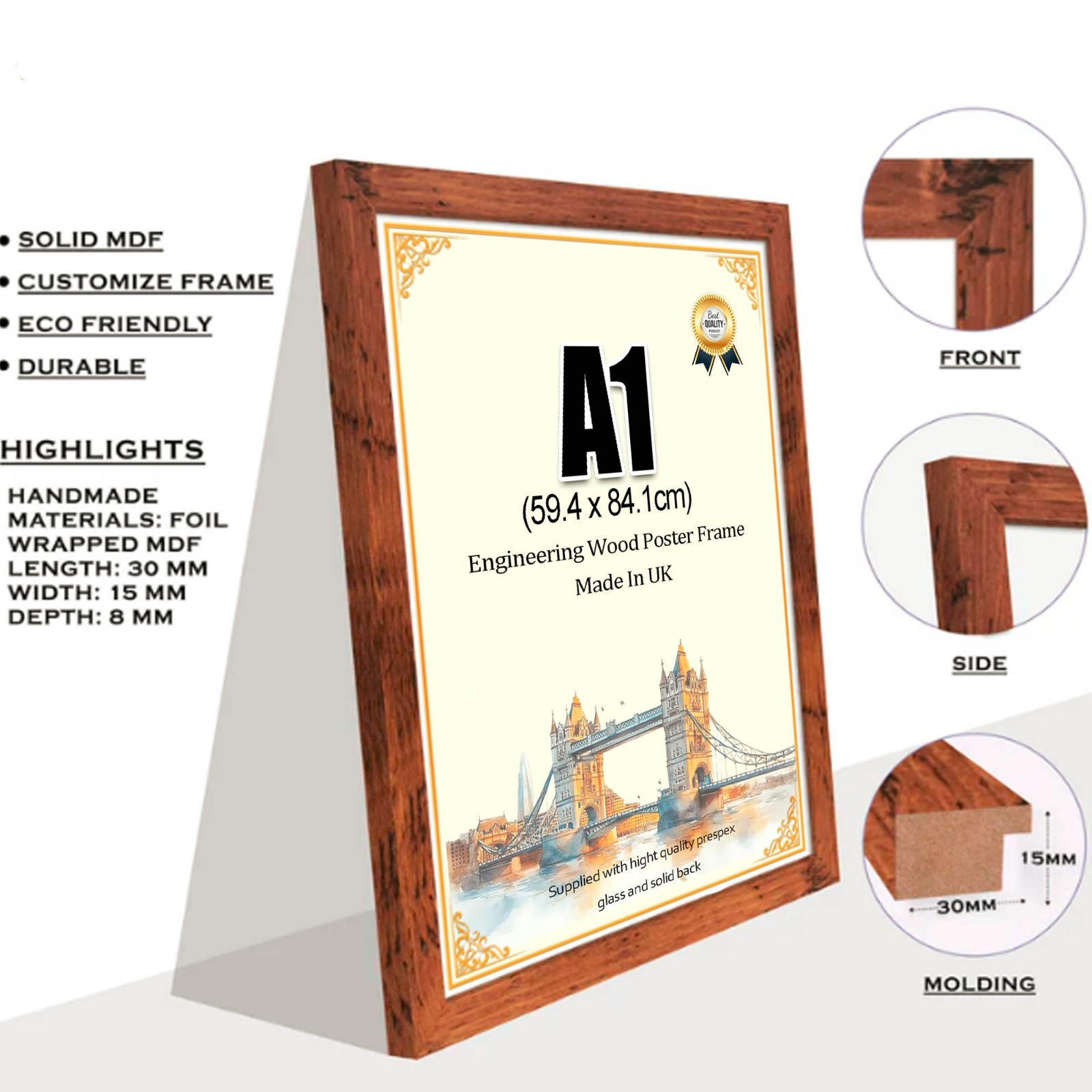 Alison Kingsgate Modern A1 Rustic Oak Picture Frame - Engineered Wood Photo Frame with Shatterproof Perspex Front - Ideal for Posters, Certificates & Artwork - Wall Mount or Tabletop Display