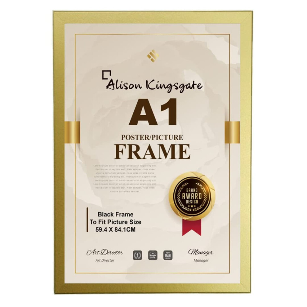 Alison Kingsgate Premium Gold A1 Frame In Size 59.4 x 84.1 cm Gold Frame - A1 Picture Frame with Clear Perspex Front - Gold Picture Frames with Wall