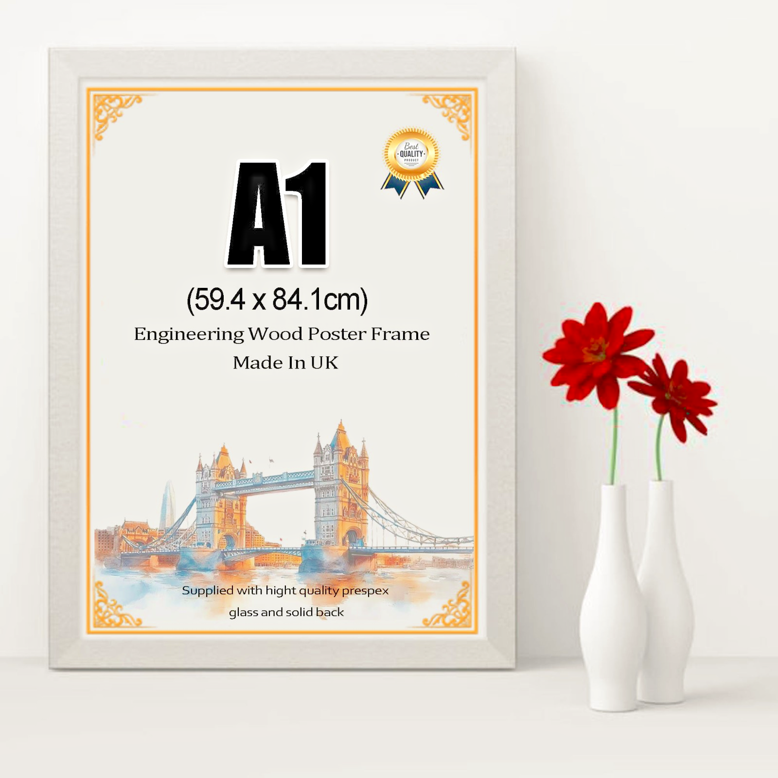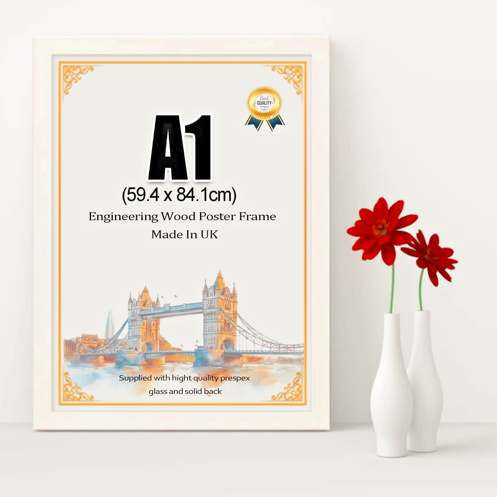 (33x23 Inch (DIN A1)) White Picture Frame / Wall Art Frames / Flat Wooden Effect Poster Frame / Photo Print Frame