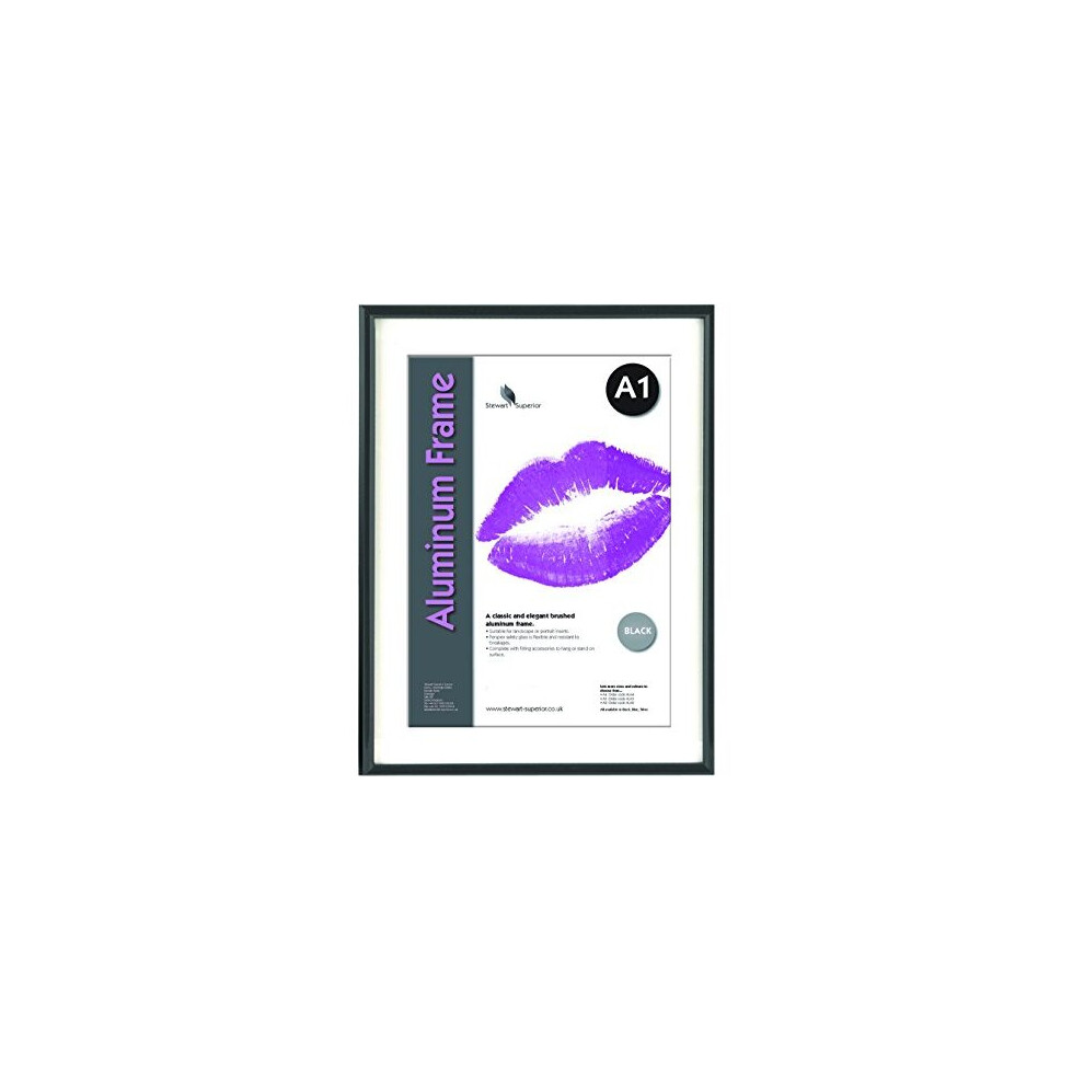 Stewart Superior A1 Brushed Aluminium Picture Frame with Perspex Safety Glass - Black