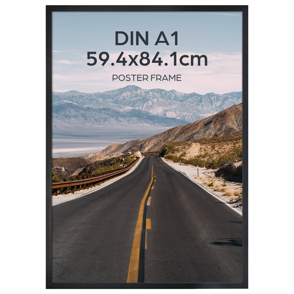 (33x23 Inch (DIN A1)) Matt Black Picture Frame / Wall Art Frames / Flat Wooden Effect Poster Frame / Photo Print Frame