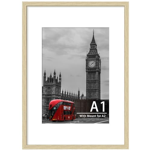 Tinkeps A1 Oak Wood Picture Frame, Engineered Wood and Plexiglass, A1 Frame with Mount for A2 Prints, Photos, and Posters, Wall Mountable