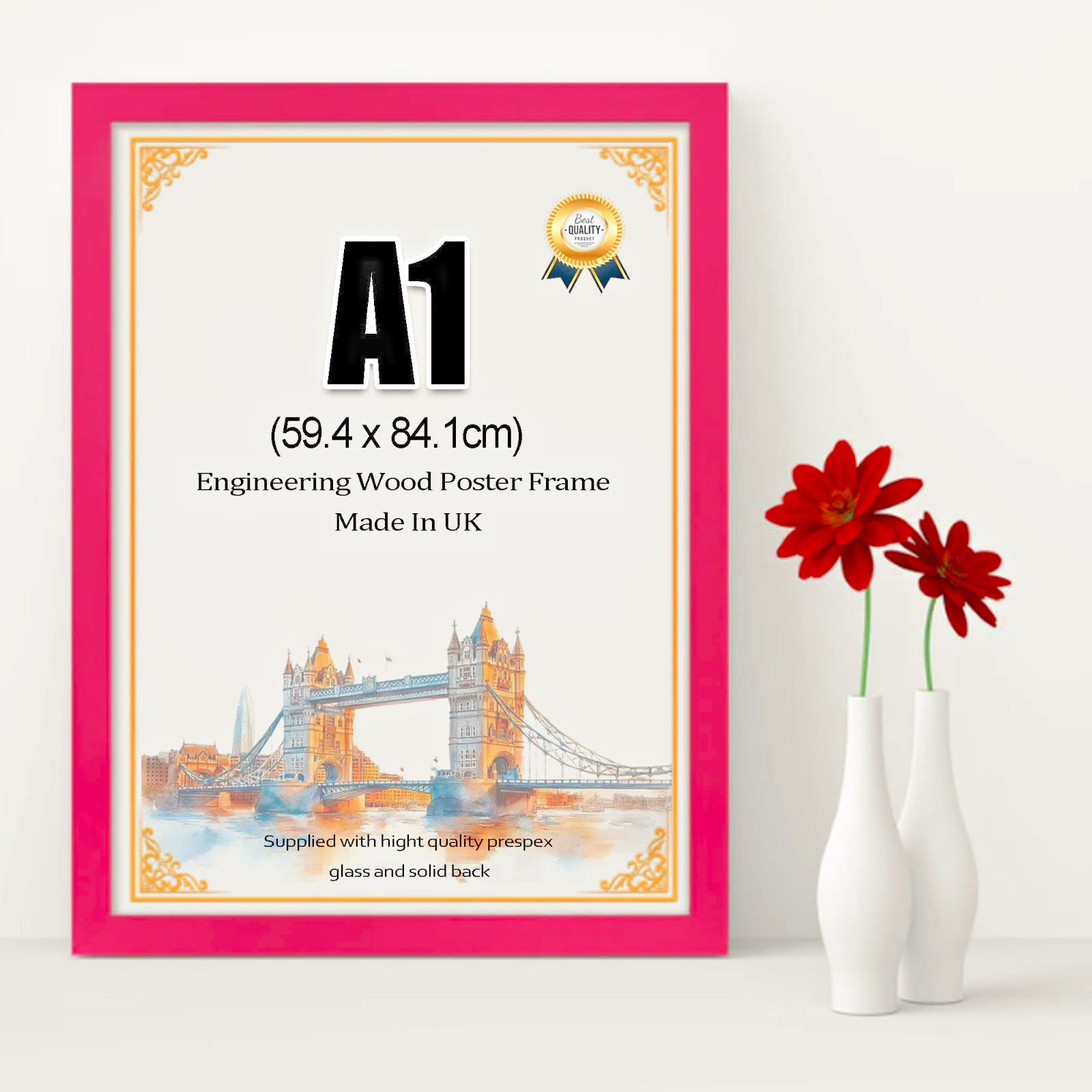 (33x23 Inch (DIN A1)) Pink Picture Frame / Wall Art Frames / Flat Wooden Effect Poster Frame / Photo Print Frame