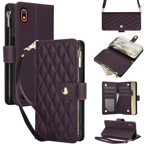 Asuwish Phone Case for Samsung Galaxy A10 with Tempered Glass Screen Protector and Zipper Wallet Cover Card Holder Slot Stand Flip Mobile Cell Accessories A 10 10A SM A105M 6.2 inch Women Dark Purple