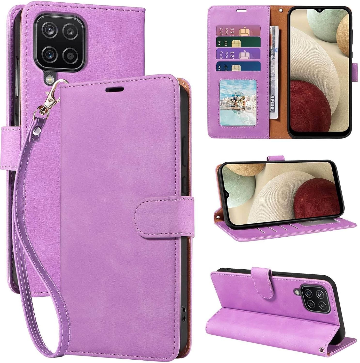Nokverzy Wallet Phone Case for Samsung A12 Cover,Lychee Pattern,Magnetic Closure Flap Pocket Wallet,Card Slot,Stand Function Case for Samsung Galaxy A12 Mobile Soft Shockproof Case -Purple