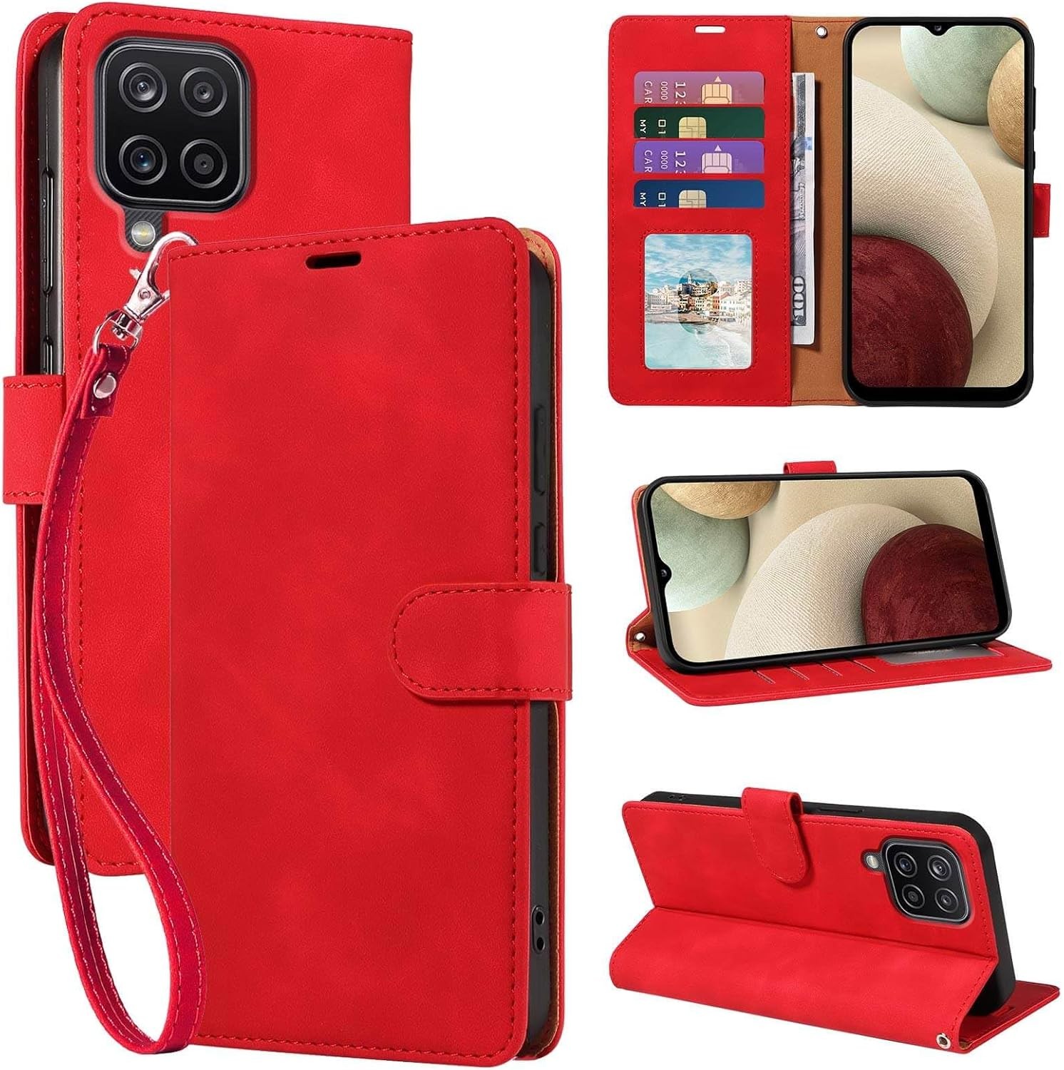Nokverzy Wallet Phone Case for Samsung A12 Cover,Lychee Pattern,Magnetic Closure Flap Pocket Wallet,Card Slot,Stand Function Case for Samsung Galaxy A12 Mobile Soft Shockproof Case -Red