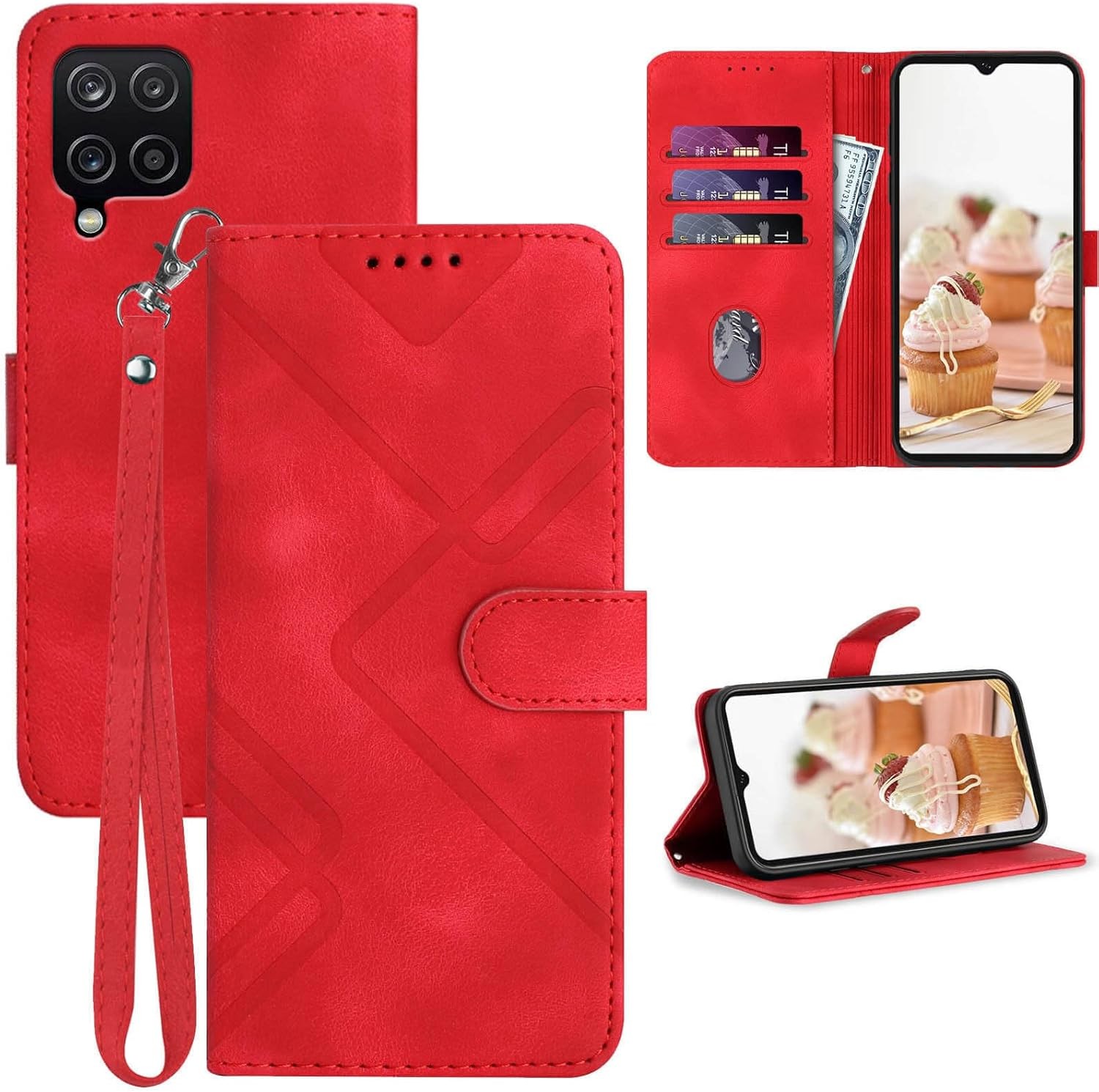 Norn Samsung Galaxy A12 5G(6.5") leather Wallet Case,Cartoon Phone Case with Kickstand,Folding Stand PU Leather wallet,shokproof Flip Cover Protective Case with Card Slots,Magnetic Closure,Red