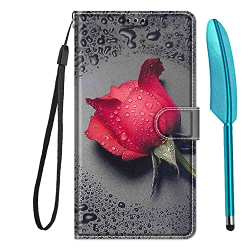 Samsung A12 Case Shockproof Wallet Phone Cover Flip PU Leather Silicone Bumper Slim Fit Protective Cover with Card Holder Magnet Kickstand Samsung Galaxy A12 Case & 1 Touch Pen, Red Rose
