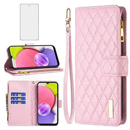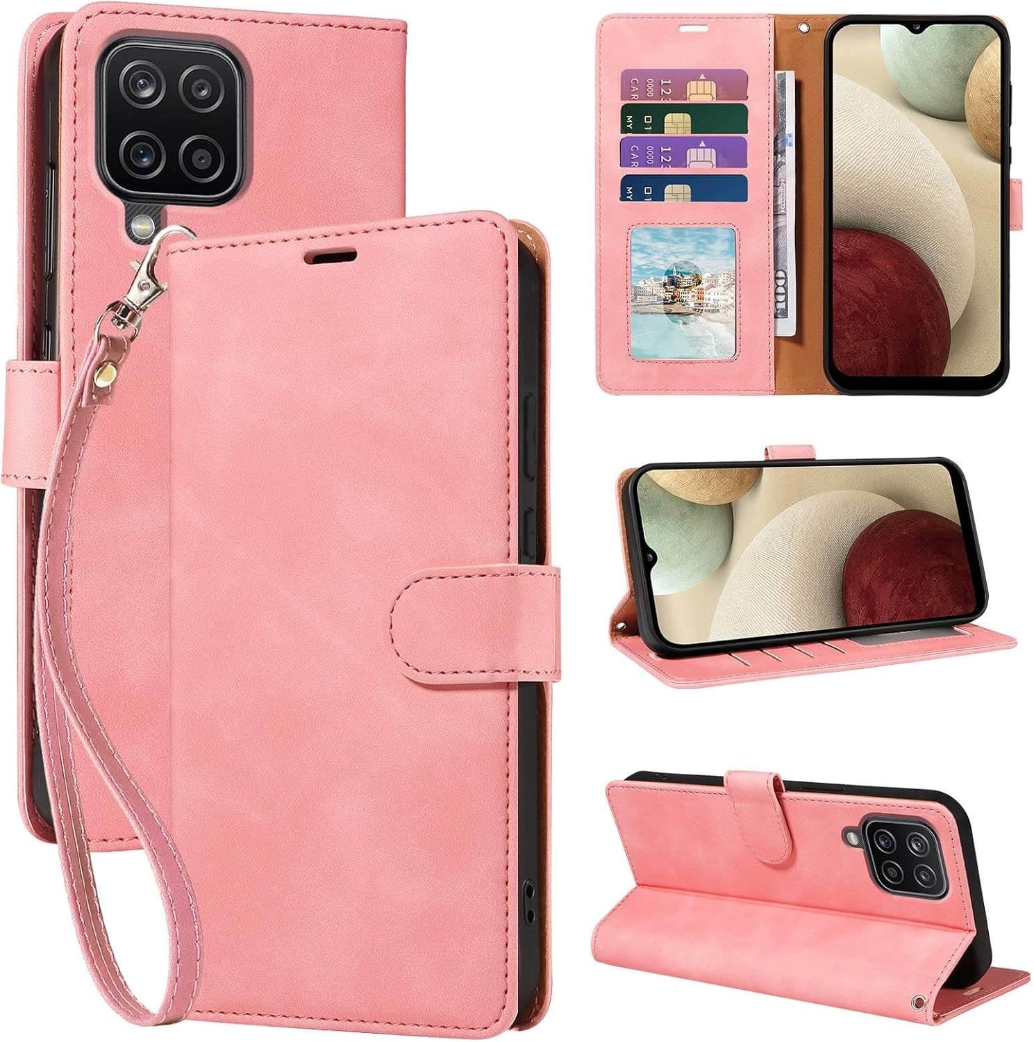 Asuwish Phone Case for Samsung Galaxy A12/M12 Wallet Cover with Tempered Glass Screen Protector and Leather Flip Credit Card Holder Stand Cell Accessories TPU A 12 5G A-12 S12 12A 4G Women Girls Pink