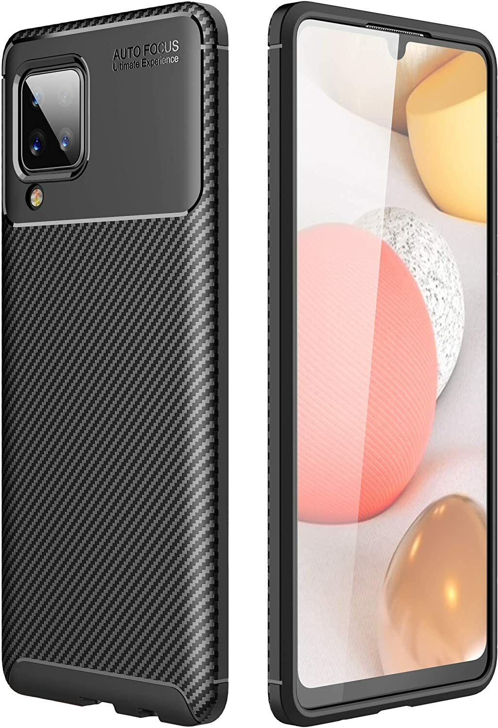 For Samsung Galaxy A12 Case Carbon Slim Cover & Glass Screen Protector