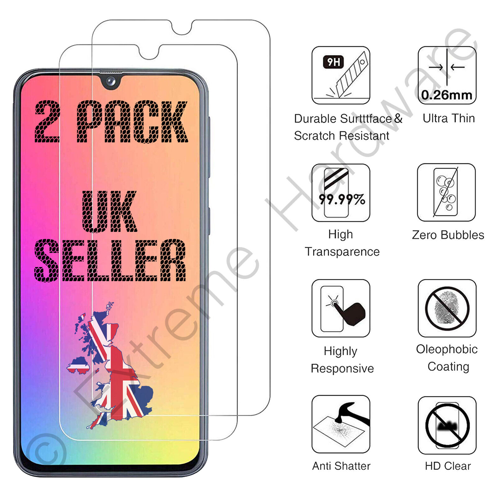 2 x Tempered Glass H9 Ultra Hard Screen Protector & Wipes for Samsung Galaxy A12