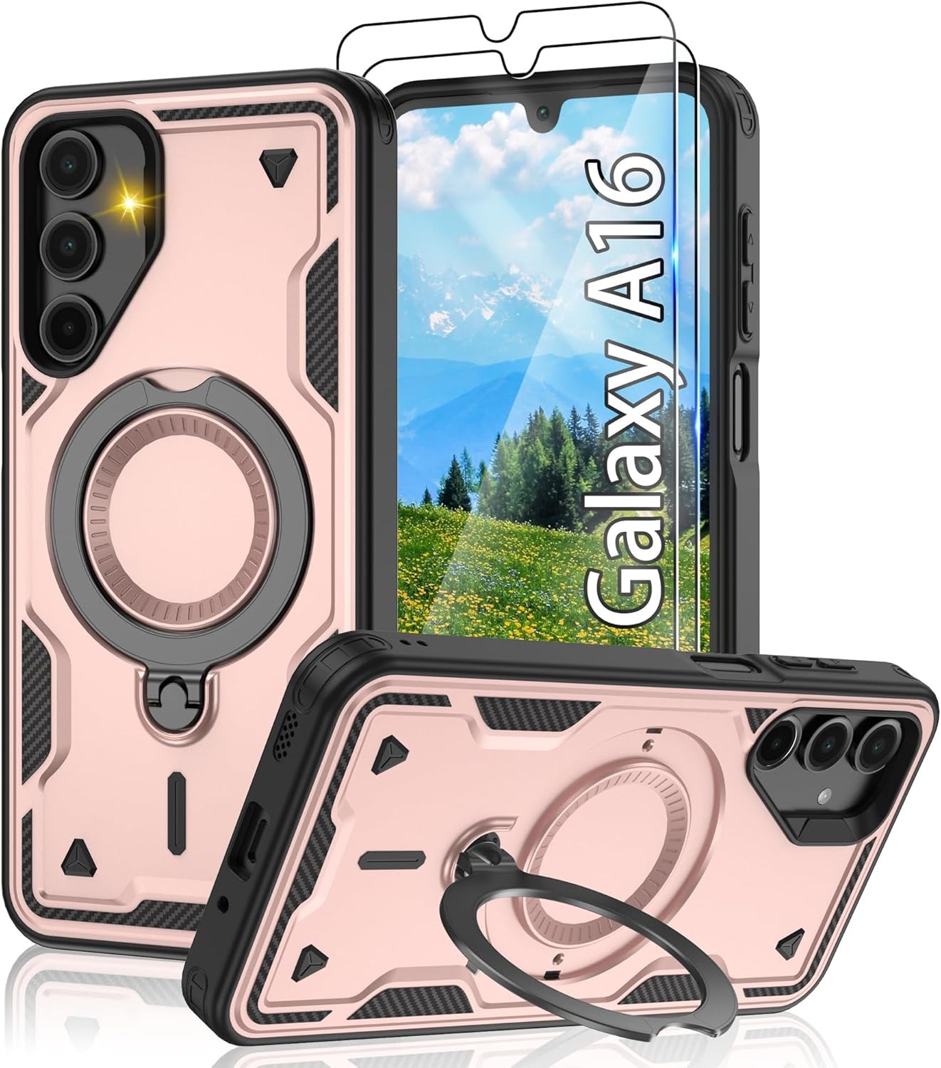 3 in 1 Magnetic for Samsung A16 Phone Case | Built-in Stand | 2 Pack HD Screen