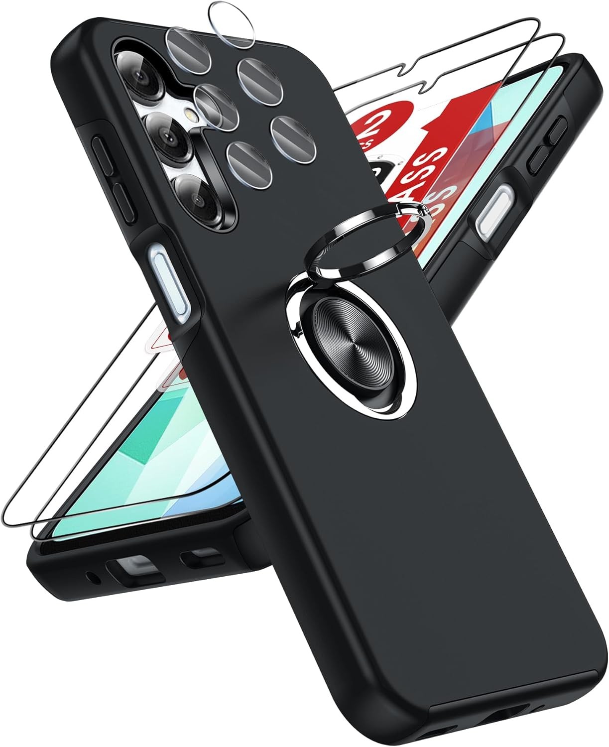 Case for Samsung Galaxy A16 Strong Phone Cover Magnetic Ring Holder + Black